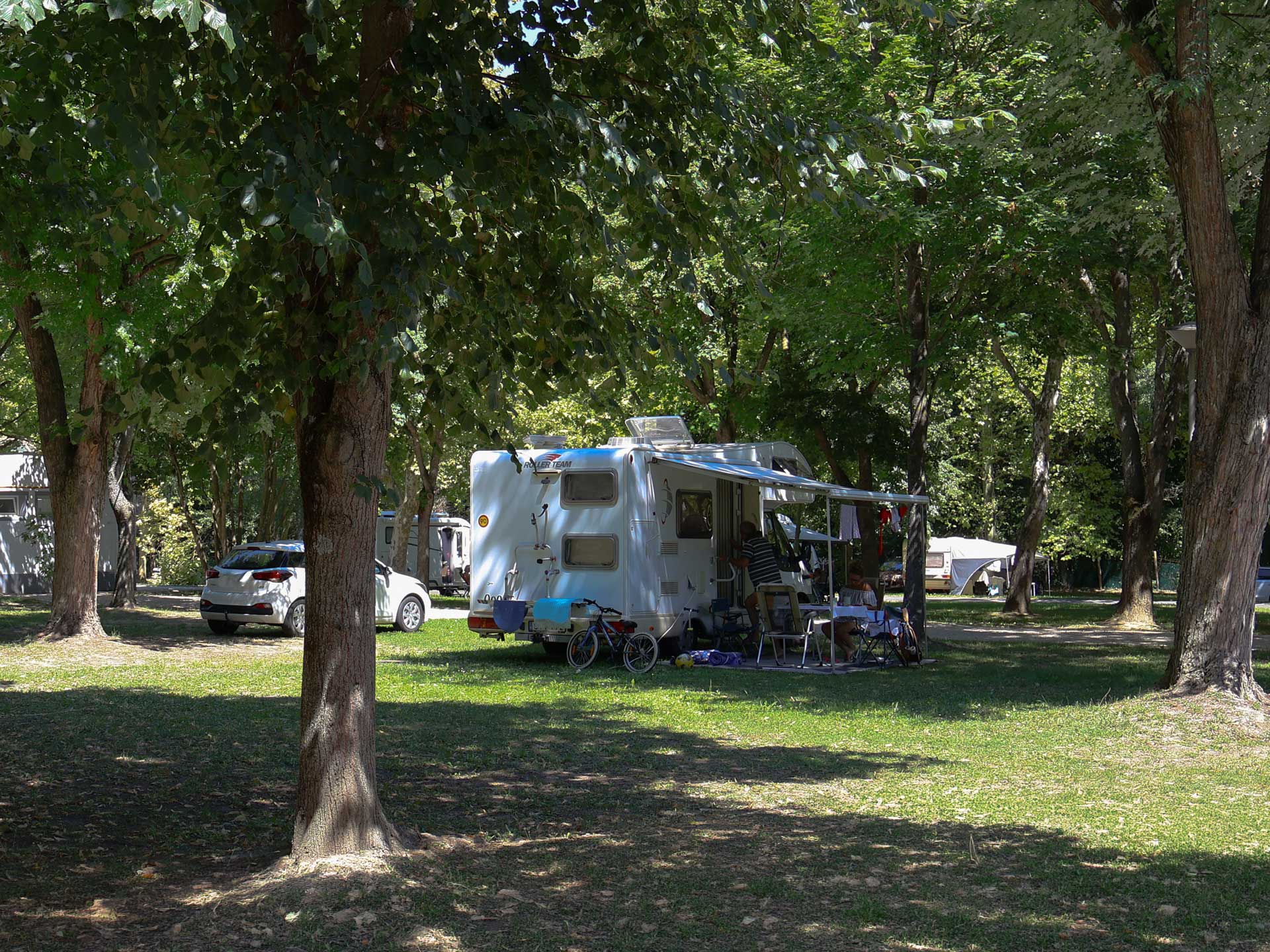A kemping füves területén szabadon választható helyeken állhattok meg sátorral, lakókocsival vagy lakóautóval. A tágas környezet lehetővé teszi, hogy kényelmesen berendezkedjetek, pihenőteret alakítsatok ki, és élvezzétek a szabadtéri kempingezés hangulatát a természet közelségében. A személygépkocsi közvetlenül a sátor vagy lakókocsi mellett parkolhat. Minden elhelyezéshez áramcsatlakozási lehetőséget biztosítunk, amely a szállásdíj része.